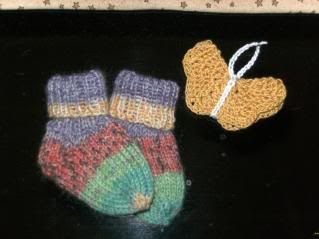 Für die Klinikaktion habe ich mittlerweile ein paar Schmetterlinge als Erinnerungsstücke gehäkelt und ein Abschiedsset gestrickt. In ca. 14 Tagen soll meine erste kleine Lieferung versandt werden. Aber seht selbst: