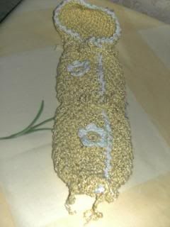 .... sind noch für die Schmettis entstanden. Der Engel als Erinnerungsstück für das türkisfarbene Tuch, Schmetterling und Tuch in Pastellgelb auch zusammengehörig. Gestern noch schnell zur Post gebracht...